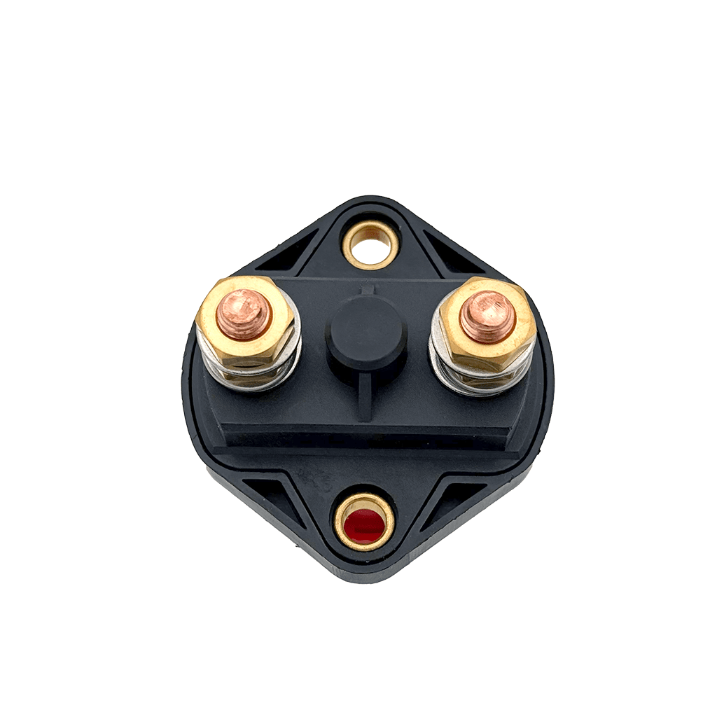 Huvudströmbrytare 1-pol, nödstopp. Tryck in för att aktivera nödstopp, rotera för att häva nödstopp